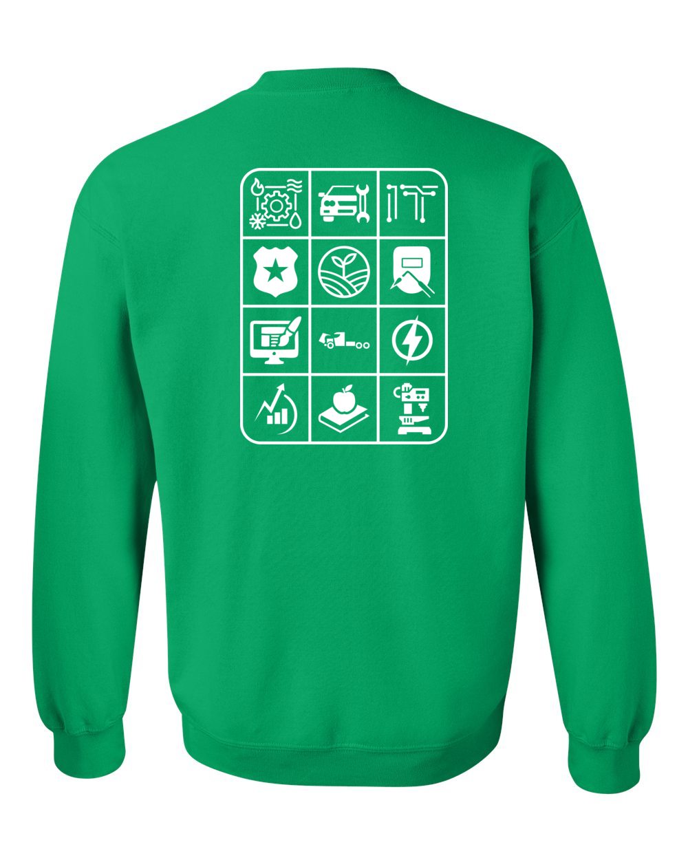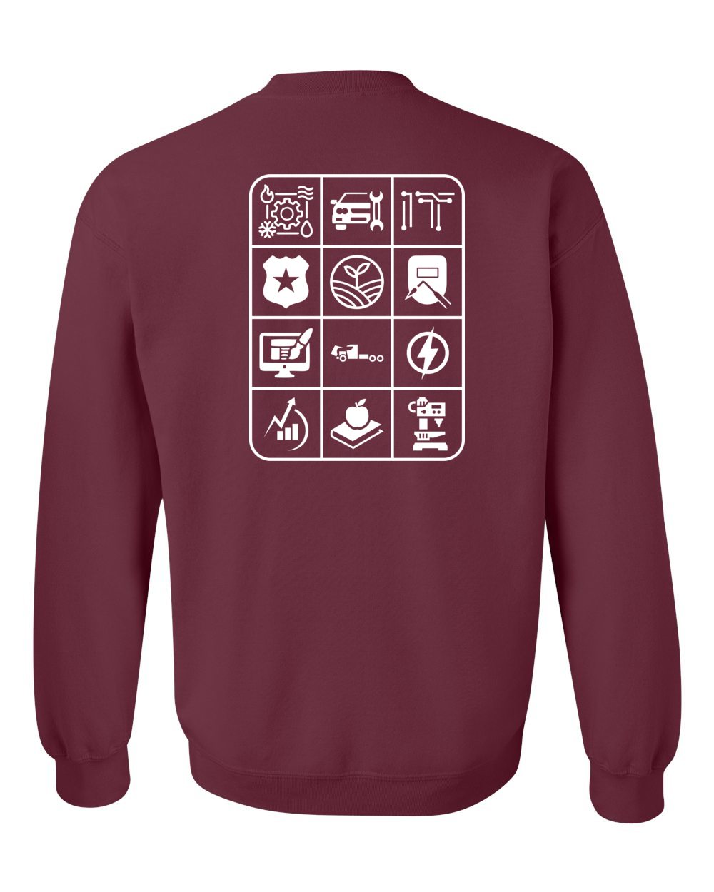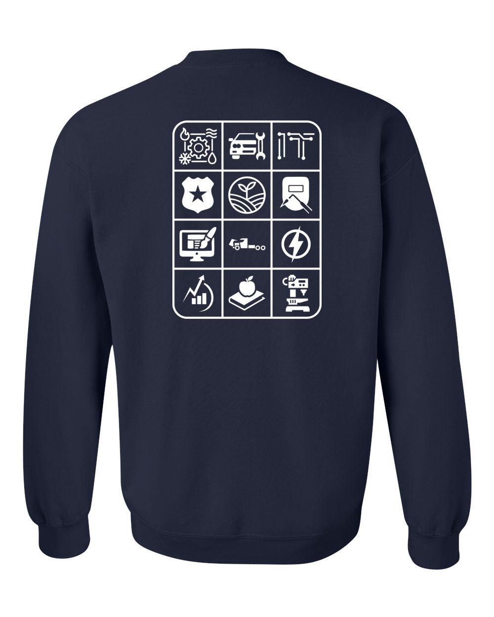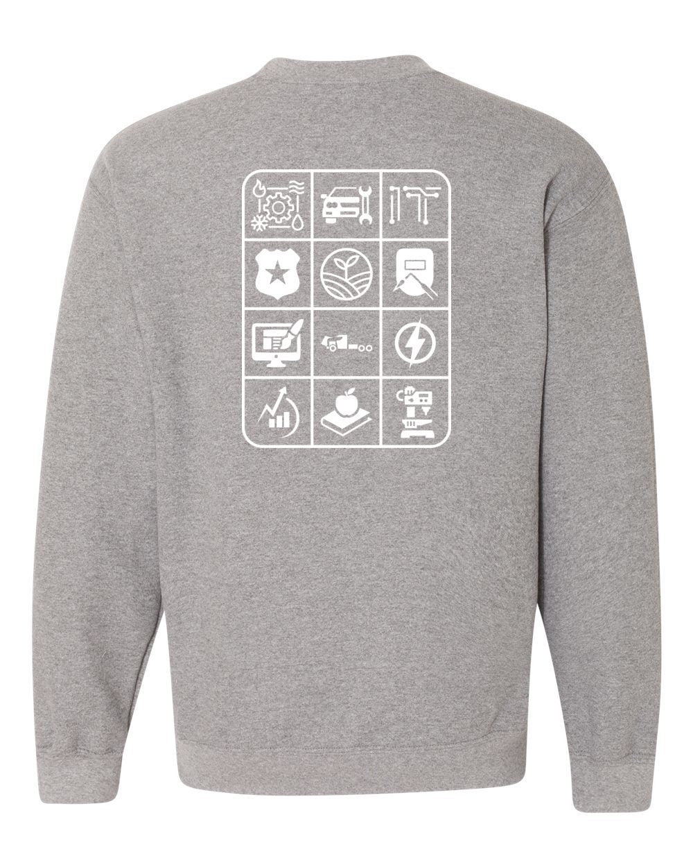 8.0 oz., pre-shrunk 50/50 cotton/polyester; Heather Sport colors are 60/40 polyester/cotton; Reduced pilling and softer air-jet spun yarn; 1x1 athletic rib knit collar, cuffs and waistband, with spandex; Double-needle stitched cuffs and waistband